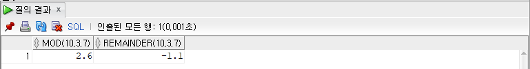 select mod(10, 3.7), remainder(10, 3.7) from dual;