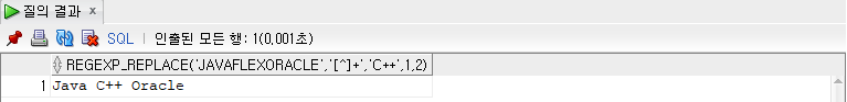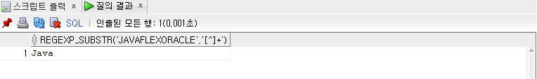 regexp_instr('JAVA Flex Oracle', '[ae]', 3, 2, 1, 'i') result2 -- x 위치를 나타냄.