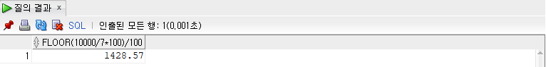 -- ascii(c1) : c1의 ascii 코드의 값을 출력