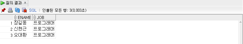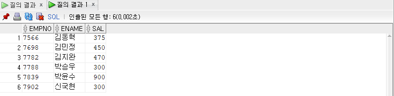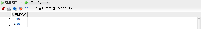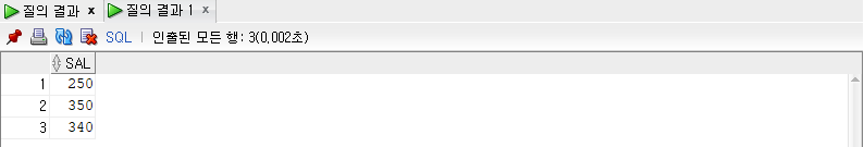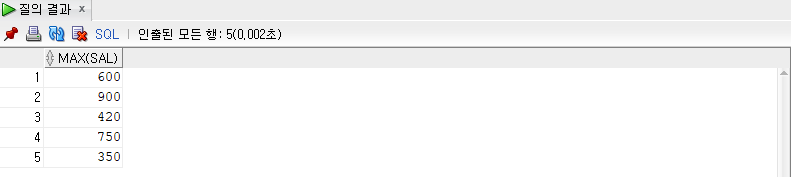 -- 단일 행 연산자(=, >, >=, <, <=, <>, !=)만 사용할 수 있음