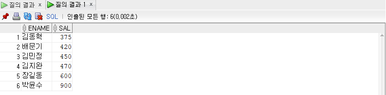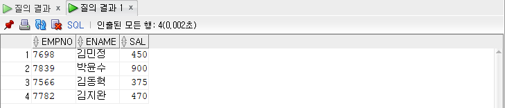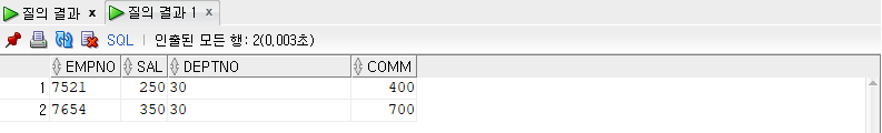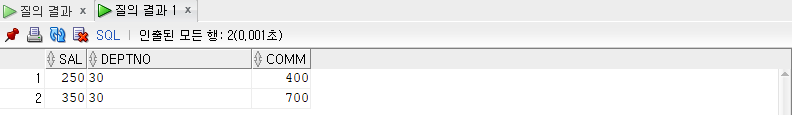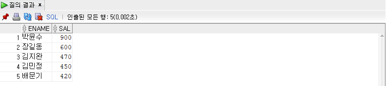 | >= ANY | 값들 중 최소값 보다 크거나 같으면 결과를 리턴 |