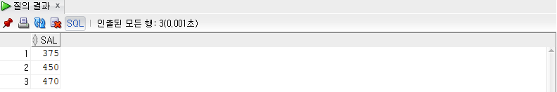 다중 행 서브쿼리 : select문장으로 부터 하나 이상의 행을 검색