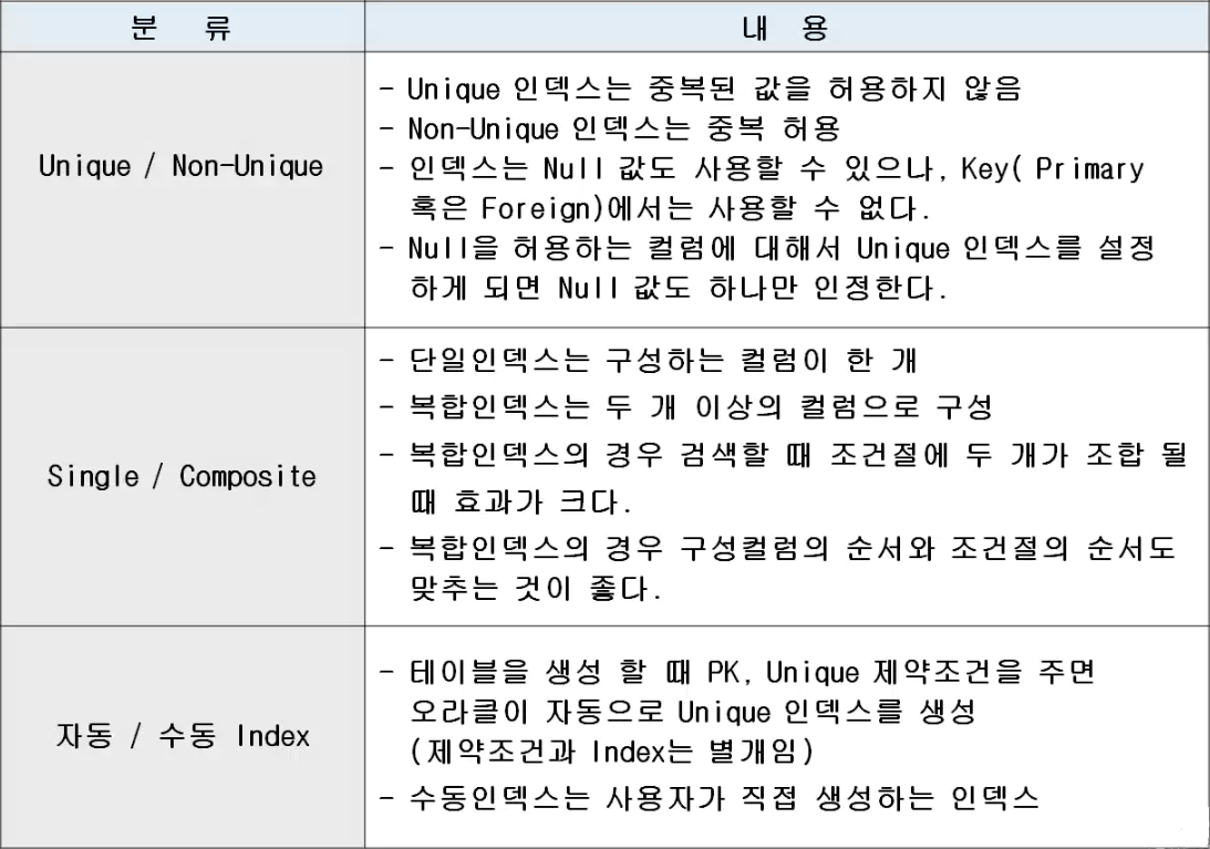 index는 수정할 수 없기에 수정을 원할 시 삭제하고 다시 생성해야 한다.