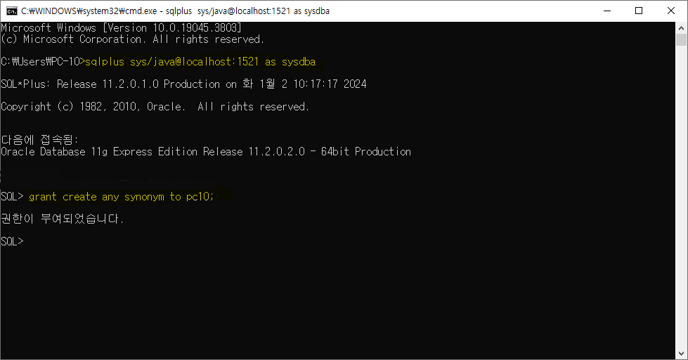 [Database] 1.5장 Oracle user 접속 및 사용권한 부여