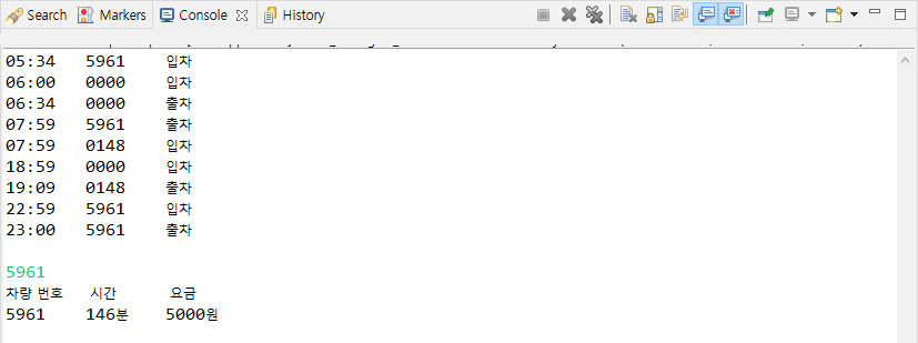 System.out.println(carNum + "\t" + min + "분\t" + pay +"원");
