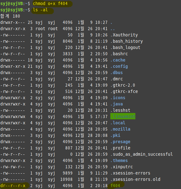 drwxrwxr-x 의 경우 첫번째 글자를 제외하여 권한을 확인해야 한다.