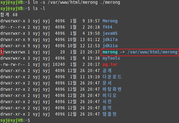 ln -s 대상 링크생성위치 | 심볼릭 링크파일 생성 (바로가기) |