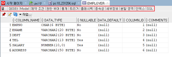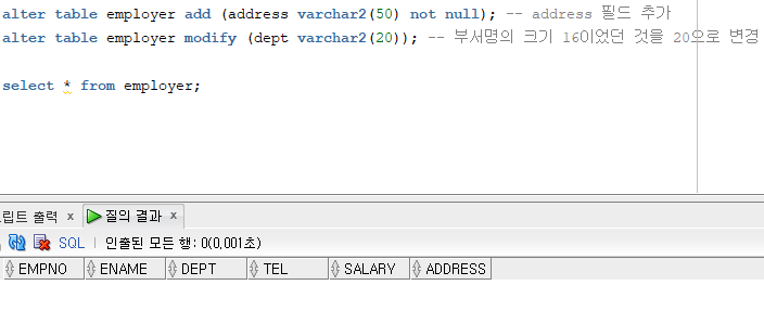 alter table employer modify (dept varchar2(20)); -- 부서명의 크기 16이었던 것을 20으로 변경