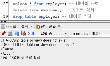 테이블을 삭제 후 데이터 조회시 오류가 발생한다.