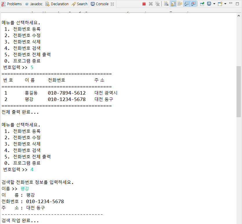 System.out.println("등록된 전화번호 정보가 존재하지 않습니다.");