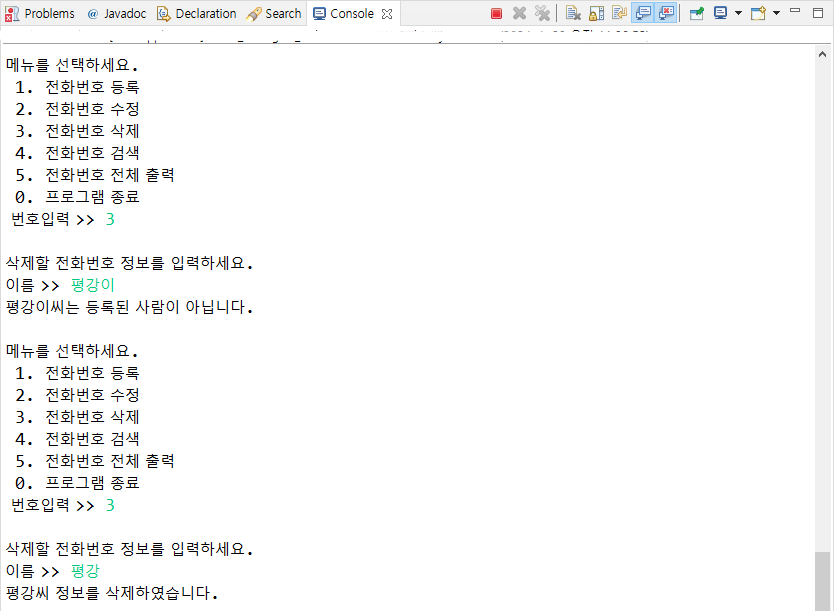 System.out.println("삭제할 전화번호 정보를 입력하세요.");