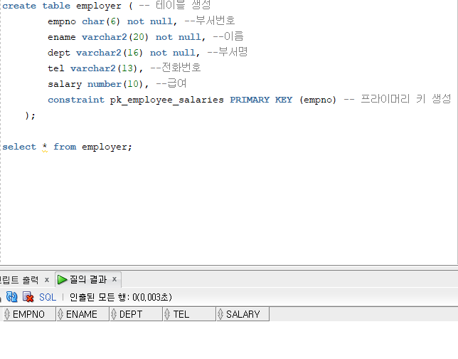 constraint pk_employee_salaries PRIMARY KEY (empno) -- 프라이머리 키 생성