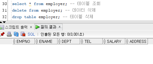Oracle SQL Developer는 소문자와 대문자를 가려 쓰지 않으며, 항상 끝에는 세미콜론(;)이 필수다.
