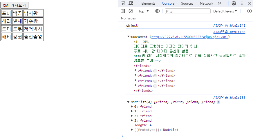 | new XMLHttpRequest() | XMLHttpRequest 객체 생성 |