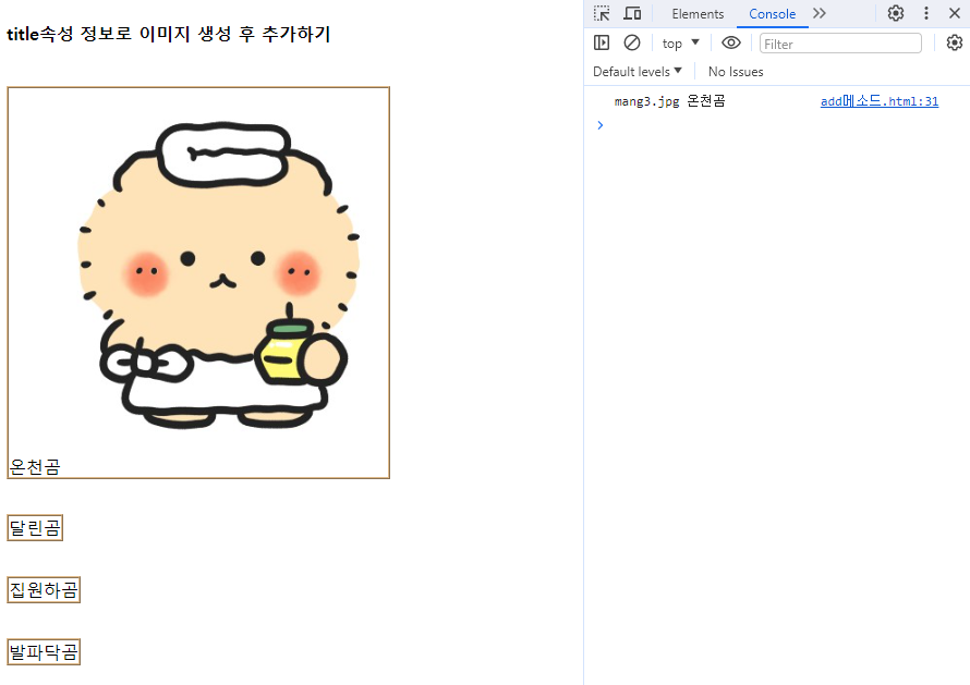 | toggleClass(class) | 매치된 요소들에 지정된 클래스가 적용되지 않았다면 적용하고, 이미 적용되어 있다면 제거 |