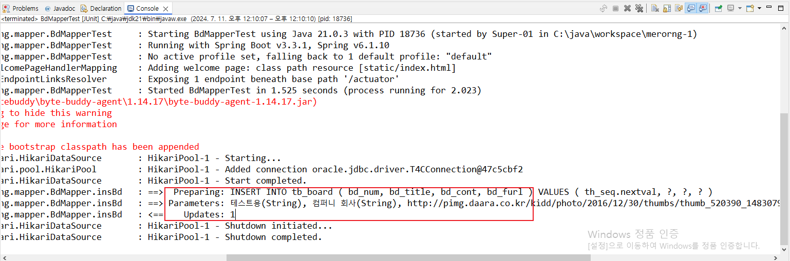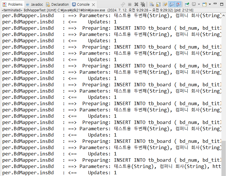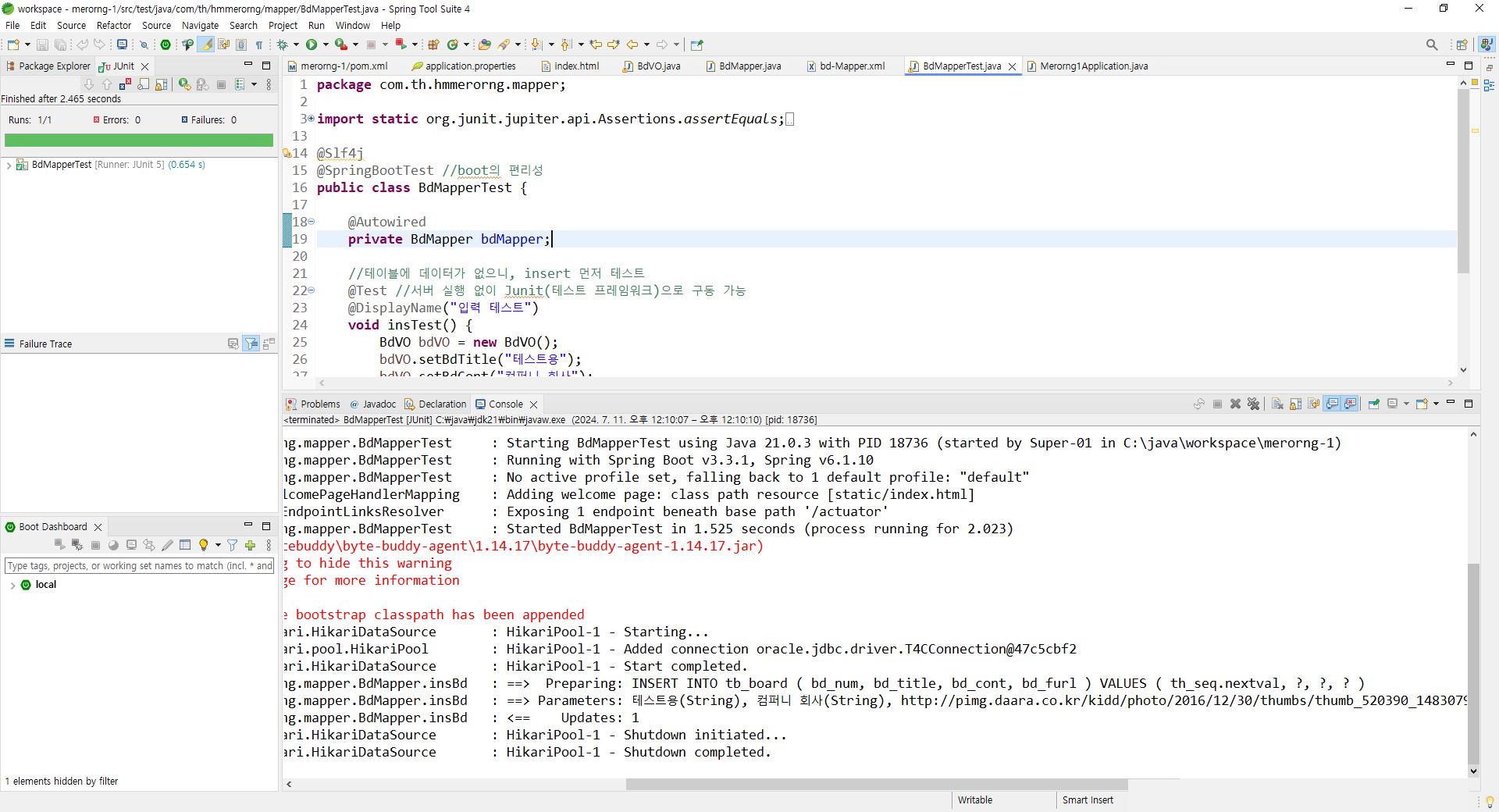//테이블에 데이터가 없으니, insert 먼저 테스트