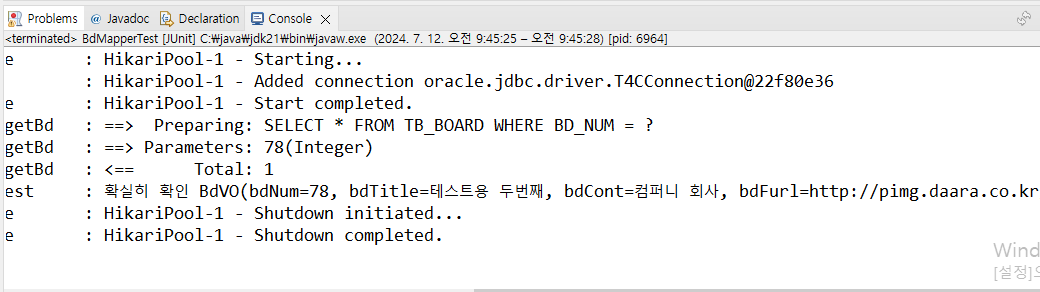 assertEquals("테스트용 두번째", testVO.getBdTitle()); //78번째 데이터 제목 넣어서 확인