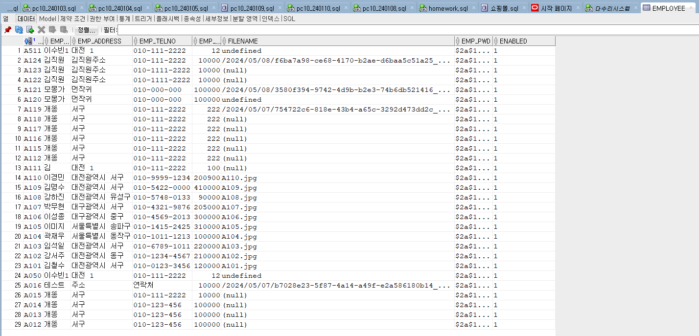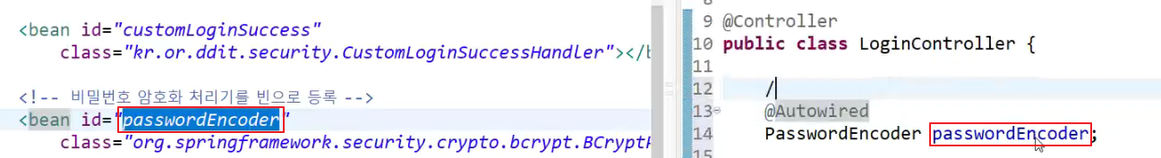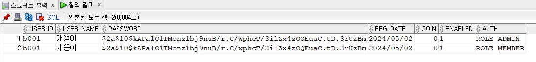 스프링 시큐리니티 5부터 기본적으로 PasswordEncoder를 지정해야 하는데, 그 이유는 사용자 테이블(USERS)에 비밀번호를 암호화하여 저장해야함.