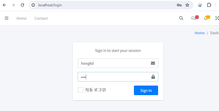 결과 화면3 : http://localhost/board/register로 입력 시 로그인 화면이 뜸