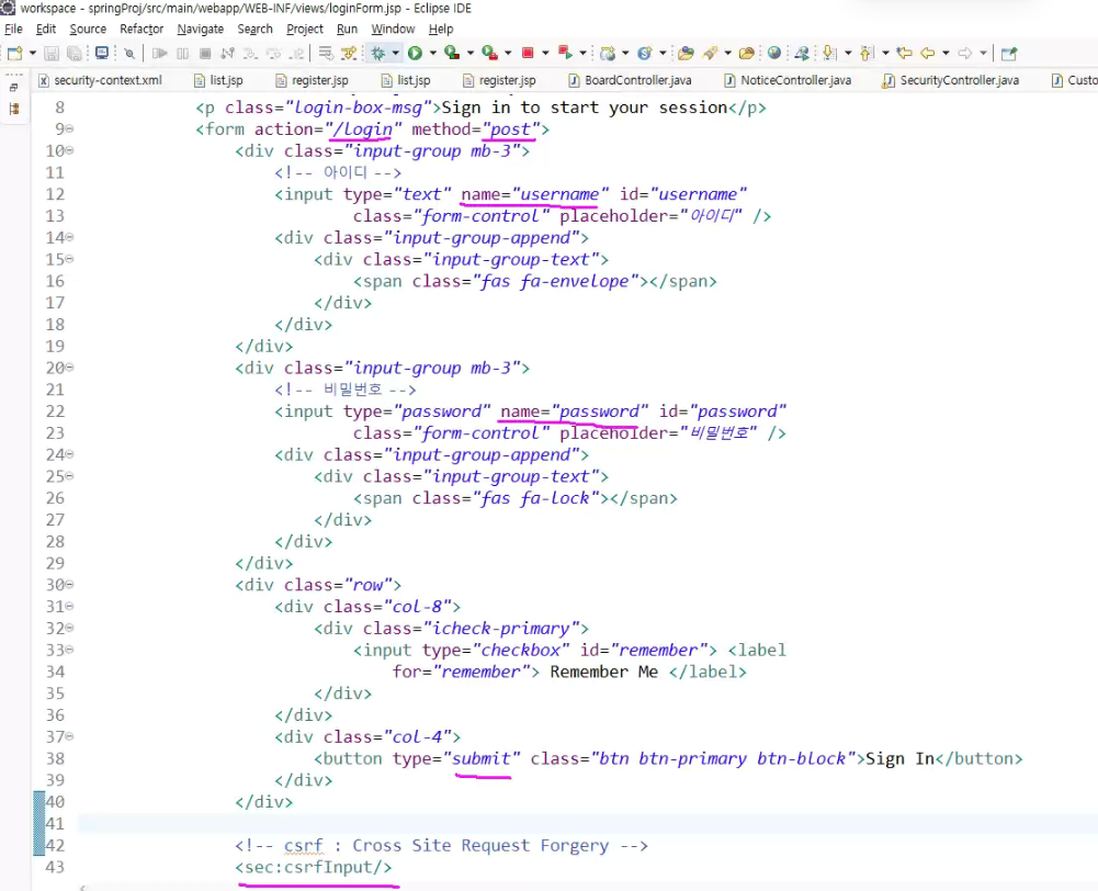 <!-- 스프링 시큐리티 라이브러리 의존관계 정의 시작 -->