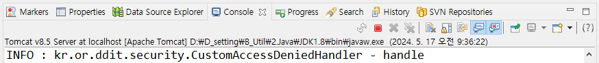 security-context.xml </security:http> 안에 추가 및 접근 거부 처리자의 URI를 지정 주석처리