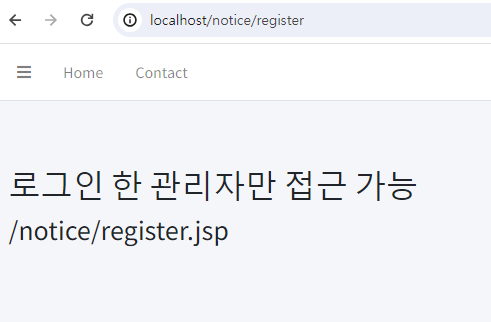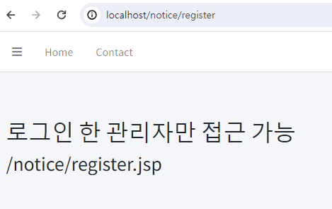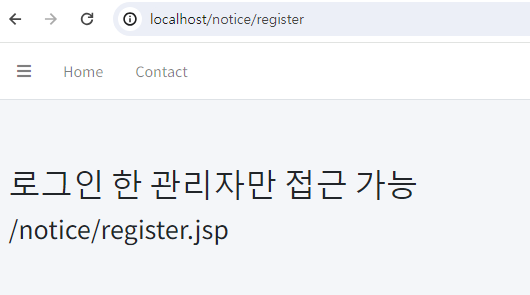 결과 화면6-1 : localhost/notice/register ❘ member와 admin으로 로그인 가능