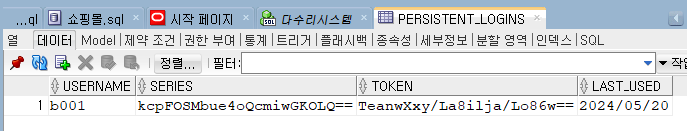 약속된 테이블(persistent_logins) 를 이용하여 기존 로그인 정보를 기록함