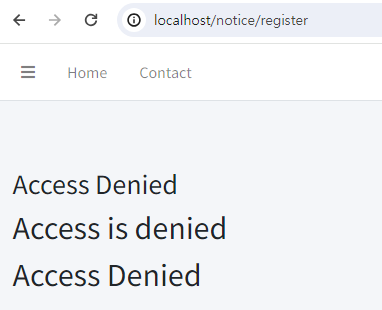 결과 화면7-1 : localhost/notice/register 의 권한이 없는 member 로 로그인 진행