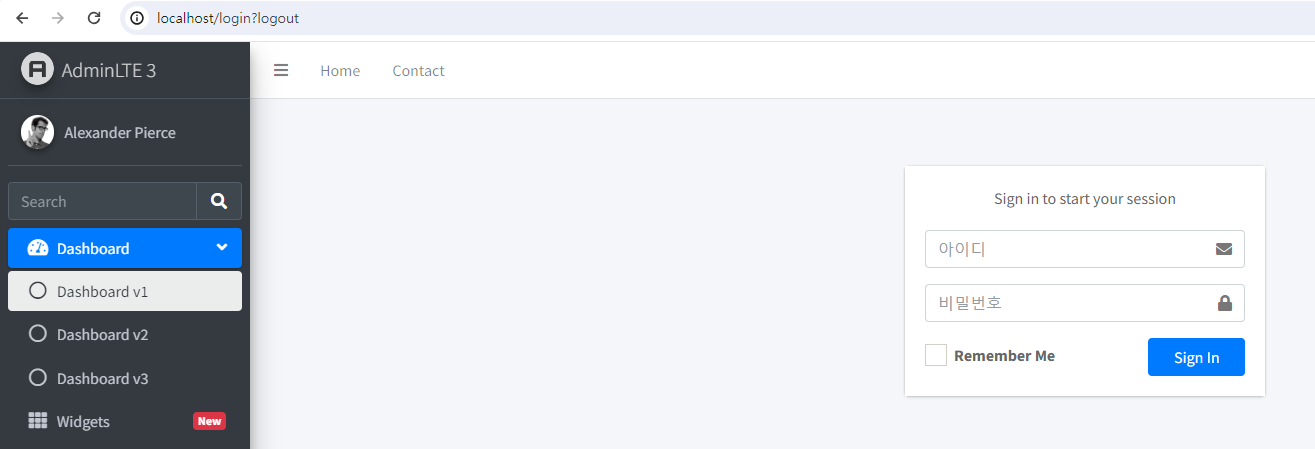 /logout : post방식 요청URI -> form의 action="/logout"에서 사용