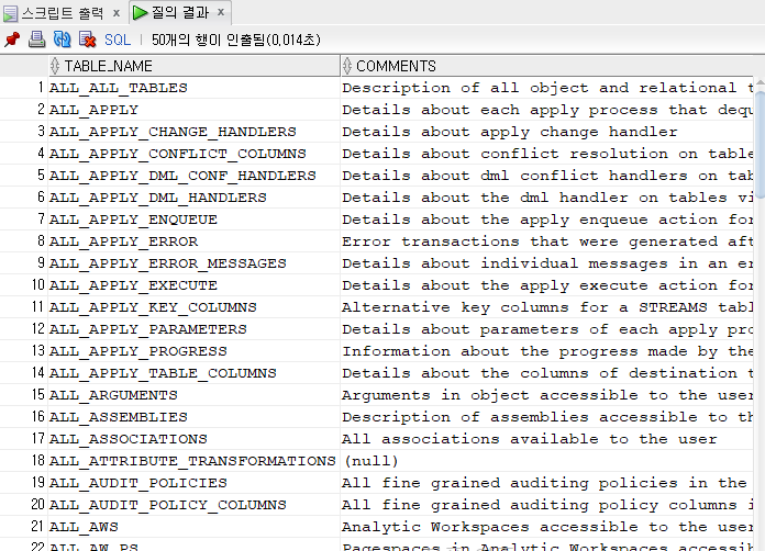 -- USER_TABLES의 컬럼 상세를 확인하고 각 테이블 전체 레코드 개수를 출력.