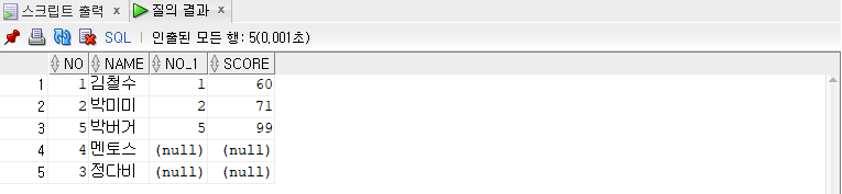 -- outer join 사용