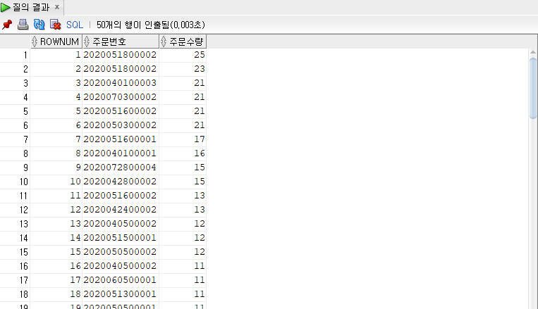 결과 화면8 : pairwise 쌍 비교 서브쿼리
