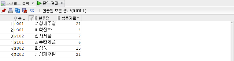 select lprod_gu 분류코드, lprod_nm 분류명, count(prod_lgu) 상품자료수