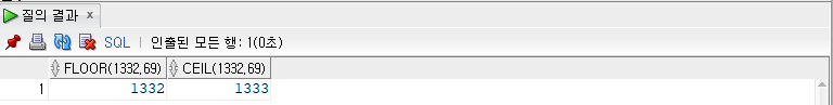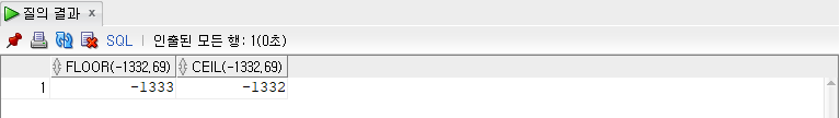 select floor(-1332.69), ceil(-1332.69) from dual;