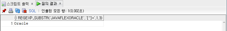 regexp_instr('JAVA Flex Oracle', '[ae]', 3, 2, 1, 'i') result2 -- x 위치를 나타냄.