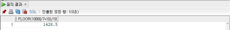 -- ascii(c1) : c1의 ascii 코드의 값을 출력