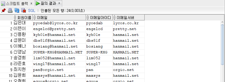 regexp_substr(mem_mail, '[^@]+', 1, 2) 이메일서버