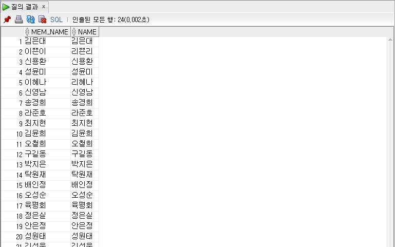 select mem_name, replace(mem_name, '이', '리') name from member;