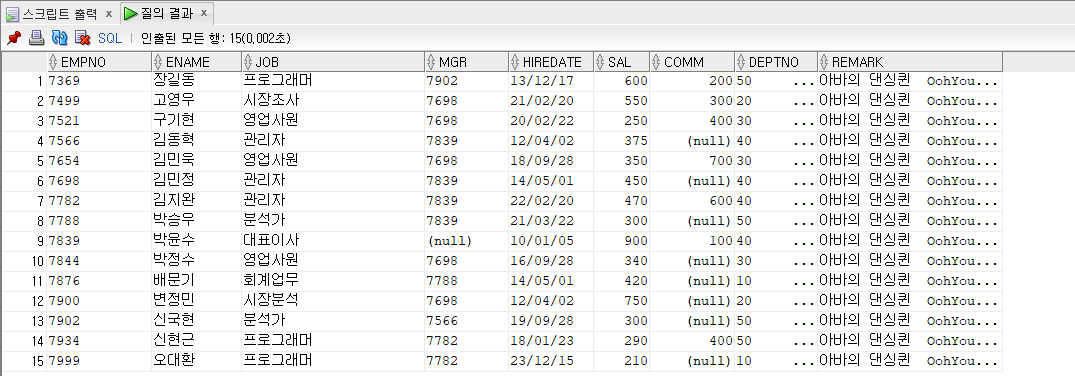 -- regexp_replace : 문자열을 다른 문자로 반환