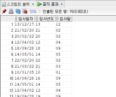 -- regexp_instr : 해당되는 위치를 숫자로 나타냄