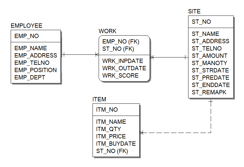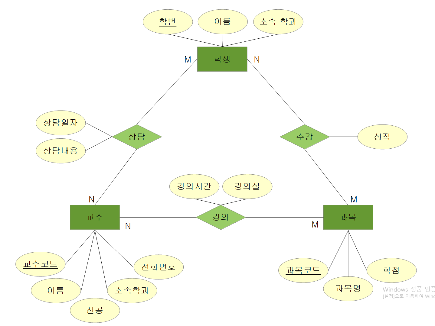 위의 ERwin Data Modeler 사용 방법을 토대로 아래와 같이 모델링을 완성한다.