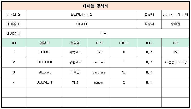 insert into subject (sub_no, sub_gubun, sub_name, sub_credit)