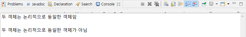 System.out.println("두 객체는 논리적으로 동일한 객체임");