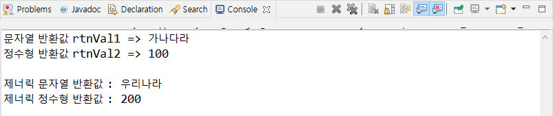 System.out.println("제너릭 문자열 반환값 : " + rtnVal1);