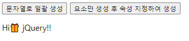 let tagP = $("<p title='🎁' onclick='f_click(this)'>Hi🎁 jQuery!!</p>");