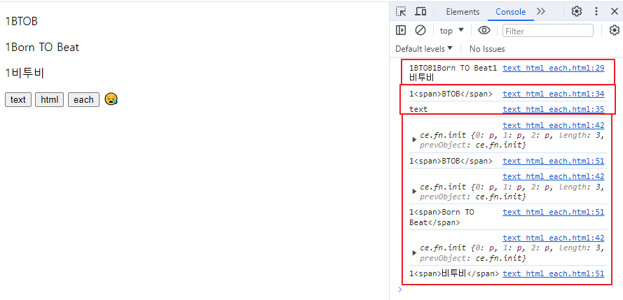 console.log($('p').eq(i).html()); // 순차적 정보를 반환