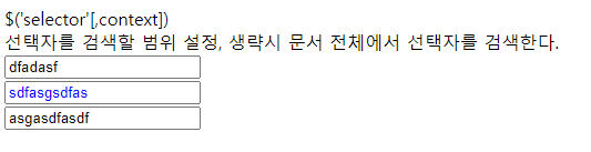 선택자를 검색할 범위 설정, 생략시 문서 전체에서 선택자를 검색한다.