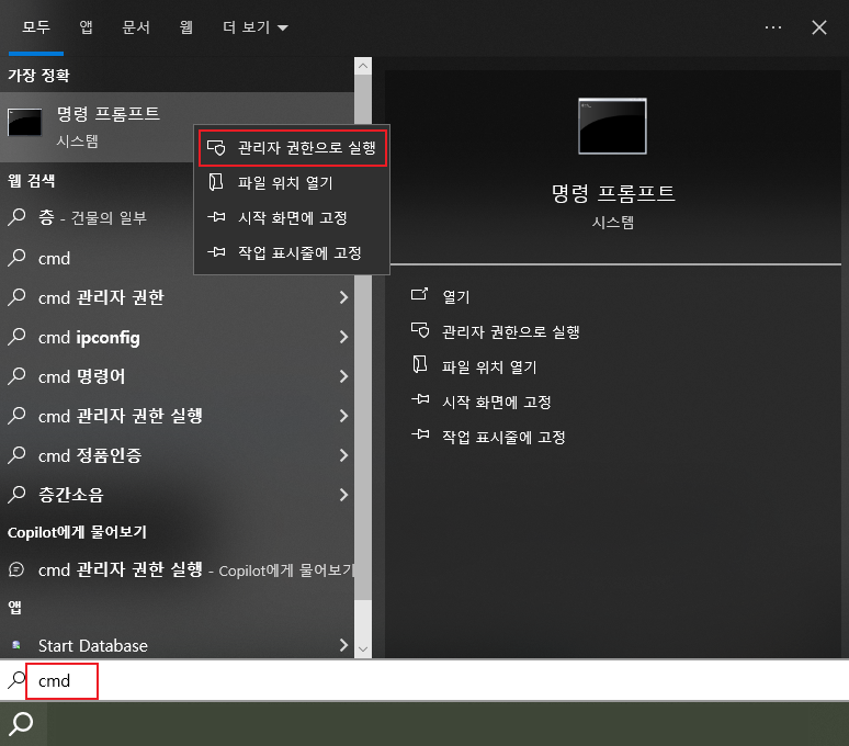 3. cmd를 입력하여 powershell를 cmd로 변경 가능